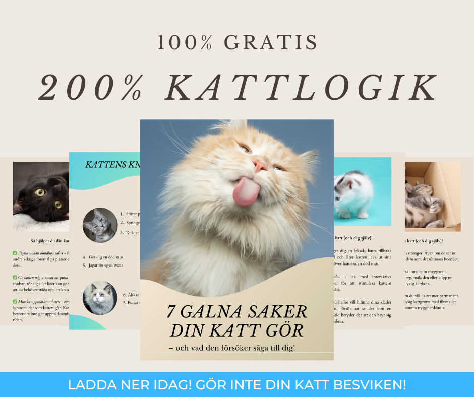 Vi älskar att sprida humor, kattkunskap och hjälpa katter i nöd. Därför går en del av vinsten från Busiga Tassar alltid till hemlösa katter. Så när du laddar ner vår guide hjälper du inte bara din egen katt – du hjälper också katter som ännu väntar på ett tryggt hem. ❤️